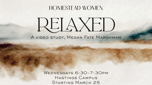 This session of Tuesday morning Bible study we will be going through the video study of Relaxed by Megan Fate Marshman. Purchase the Relaxed Bible Study Guide (not the book, but the Study Guide) on Amazon or elsewhere prior to our first meeting.