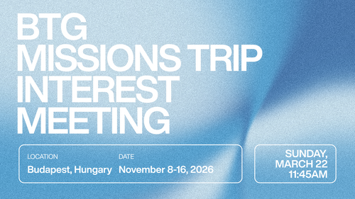 We are partnering with Bridging the Gap to take a team of women to Budapest, Hungary to host a women’s conference November 8-16! This will be an incredible trip sharing the love of Jesus to a very unchurched part of the world. The trip is available to women age 16+ (or 12+ with a parent) We will be holding an informational meeting on Sunday, March 22 at 11:45am for anyone interested in the trip.